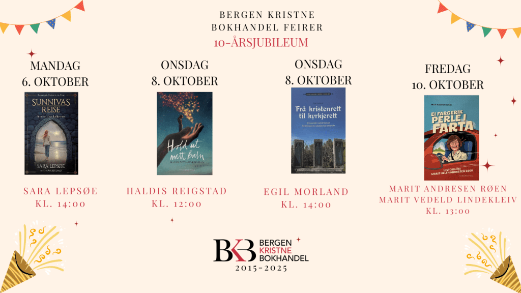 Velkommen til feiring av BKB sitt 10-årsjubileum i uke 41! Det blir jubileumssalg, gevinster, gratis bøker, og arrangement med forfattere! Mandag 06. oktober kommer Sara…